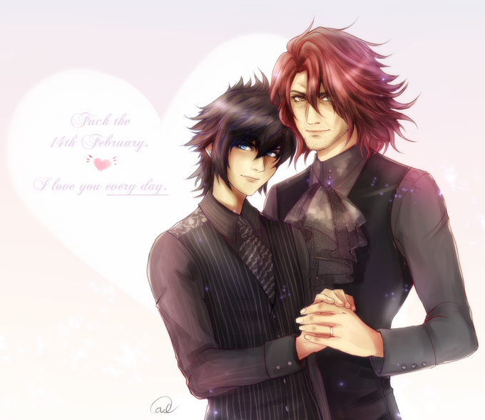 the husband's shirt is a bit too small for ardyn 😊💞💍✨アデノク