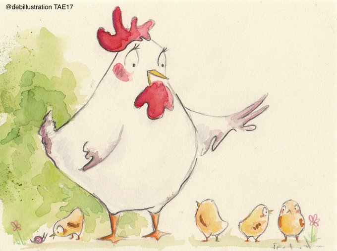 'Mother Hen' by @DebIllustration. Thanks for creating this fab illustration for us at #TAE17 for the @MollyOllys charity art sale! Love it!