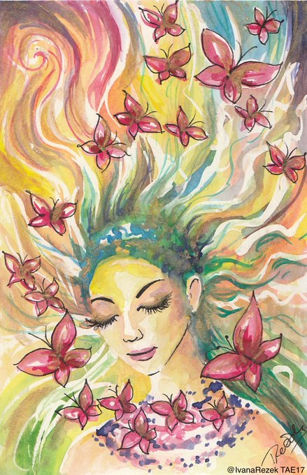 'Un-masking' by @neonblaze72. Thank you for painting this fab watercolour for the #TAE17 charity sale for @MollyOllys. Lovely!