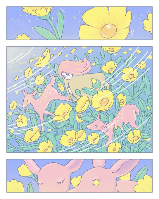 最近の2枚。 春らしい黄色い花を描こうとするとなぜか夜の設定になる不思議 #イラスト #illustration
