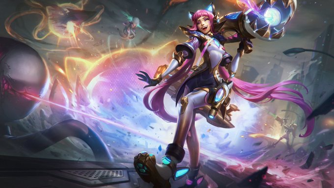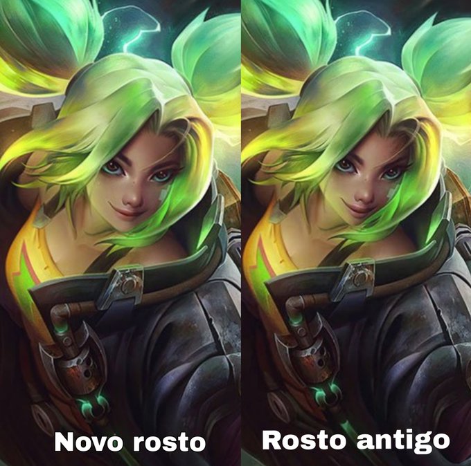 Zeri recebeu uma atualização em sua splash art, alterando detalhes no rosto.