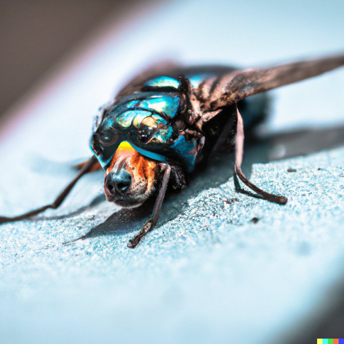 Note that I had to first generate a fly, then edit the face and change the prompt in order for #dalle2 to give the shown result. At least #DALLE2exp does something with the final prompt, but it looks unrealistic/synthetic