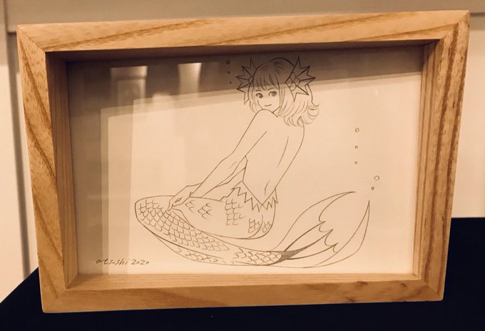 #吉崎観音 先生がcaimanの企画に初参加‼︎ 貴重な色紙原画の #アマビエ はグラデーションが美しく、タッチが活かされた色鉛筆彩色。声をかけたくなるよな海娘の誕生です。