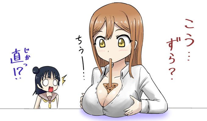 やり方を間違えてる花丸ちゃん( *´艸`) #タピオカチャレンジ