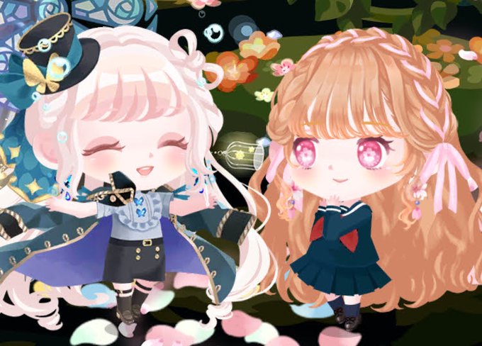 @shiratama887 せっかくだしやってみた! しらちゃと僕といえばこの子たちだなぁと思って環&結花にした! 環ちゃんはしらちゃのまっしろかわいいイメージで聖猫コーデ、結花はピンクだけどフェミニンではなく大人っぽく和桜コーデ✨