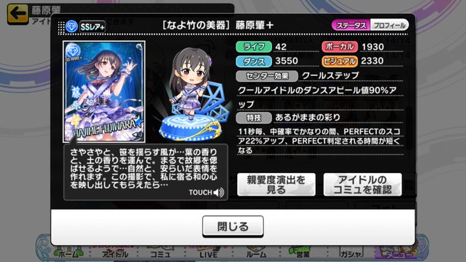 [なよ竹の美器]藤原肇とかいう愛でて良し、スコアタして良しのスーパースター #肇を一に #第9回シンデレラガールズ総選挙 #スカチケ誰にしようか迷ってる人のために担当ダイマしようぜ