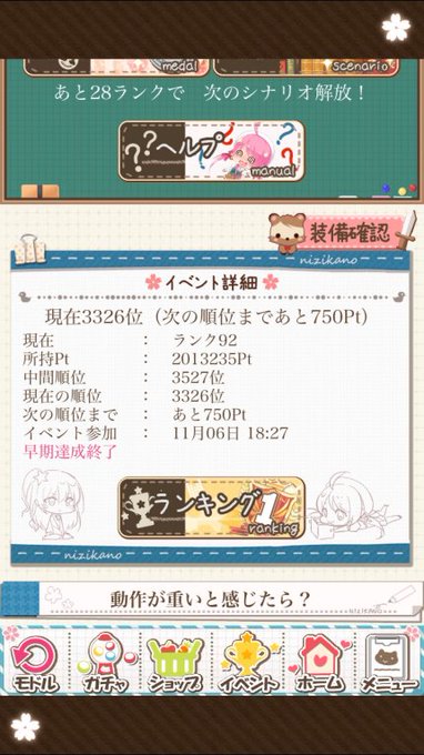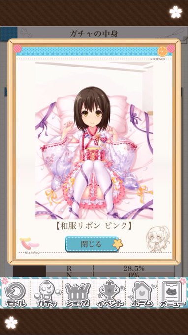 皆さんがコーデしてるのを観て、和服リボンピンク欲しいと思ったので7回だけガチャ回しました。 その衣装は出ませんでしが、特効3倍が出ました。 現在3326位。間に合うのかなぁ~w 和服リボン見た時、バトガの添い寝うらら思い出しましたw #ニジカノ #バトガ