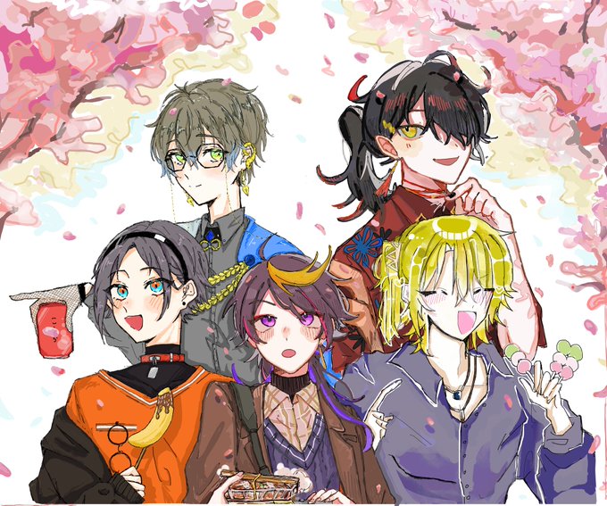 絵チャでお花見しました!!!! 💙と🧡 @ME_3_71 ❤と💜 こじき 💛 お友達