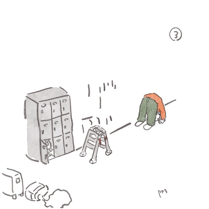 『ハードワーク』 脚立から落ちた。 気付いたら転がっていた。 僕は脚立と入れ替わった。 ということは当然なくて、 大変な日々が続きました。 やっと、連勤が終わった。 年末年始こそ忙しい皆様、お疲れ様です😭 #イラスト #ゆるいイラスト #落書き