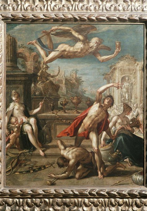 @GerardAraud 2/2 Henri II and Catherine de' Medici, in happier times, with a few ancient deities in the sky. Also a tapestry design, and by Antoine Caron. It's his day.