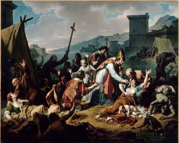 Plague pic du jour: The devotion of Monseigneur de Belzunce during the plague in Marseille, 1720. As painted in the 19th century by Nicolas André Monsiaux.