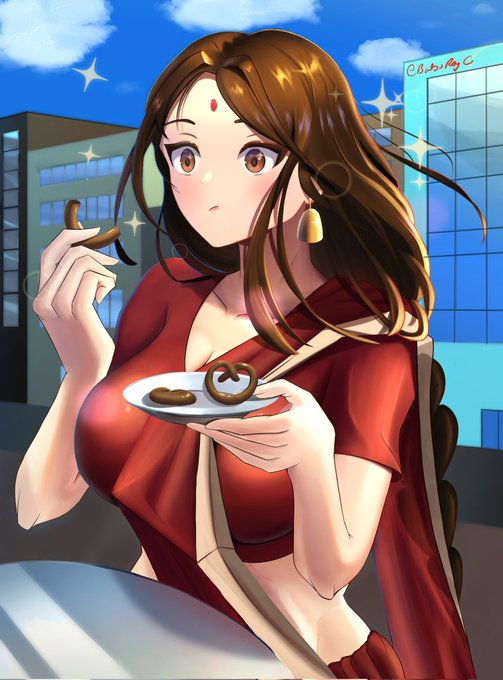 Topic: Indian girl eating Galebi.