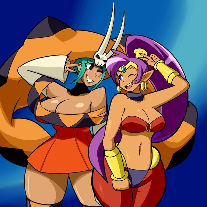 I recently did a piece with #Shantae 's titular character and #skullgirls 's Cerebella! @CristinaVee Was an inspiration!