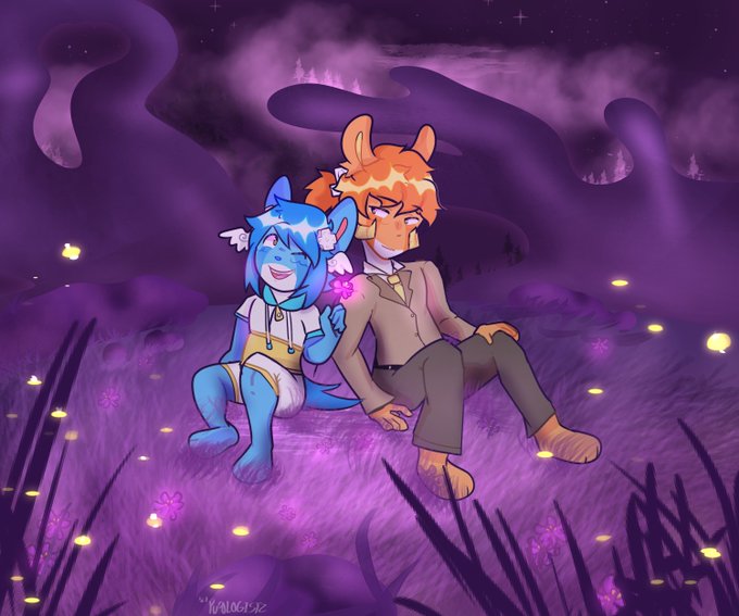 something i made to test out making backrounds!!! this is Pixel and Sebastian from my main story Pixelverse :]