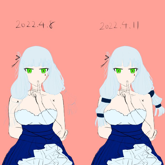 髪はめちゃめちゃよくなったけど、瞳の塗りがなんか再現性でないというか、黒系統じゃないとあの塗りはできないのか? 色調明→暗じゃなくて、暗→明か? アマゾンの奥地より謎が深い。 だーれだ!