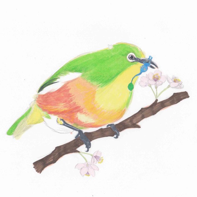 メジロ3羽描きました。 主にコピックと水彩色鉛筆(水未使用)を使用。 アニマルセラピーでとっても有意義な時間でした。鳥好きさんに届け。