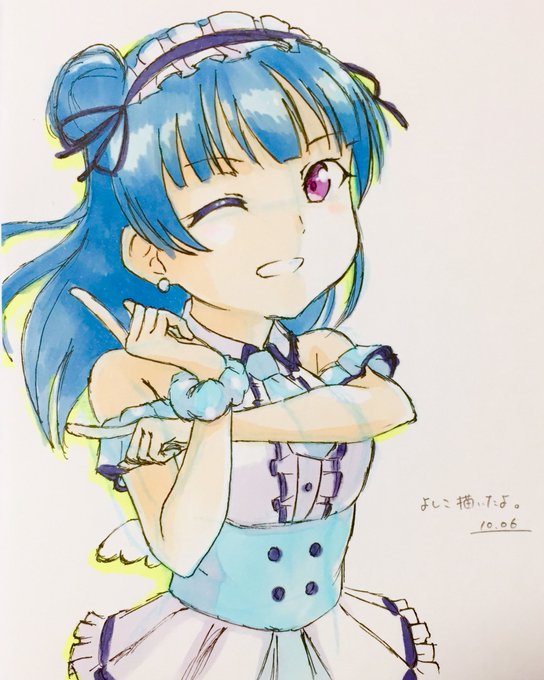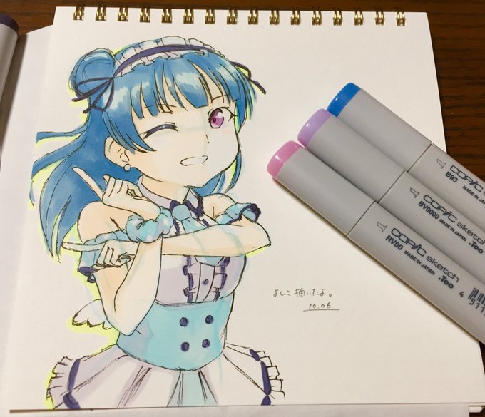善子模写。パースとったらいきなりペン入れ始めるのクソ神経使うからオススメ。