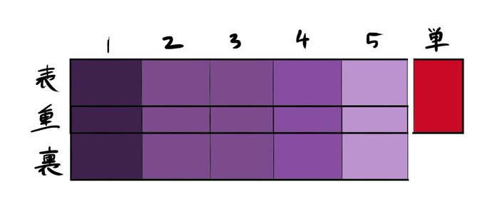 五衣の外側から1,2,3,4,5、単です