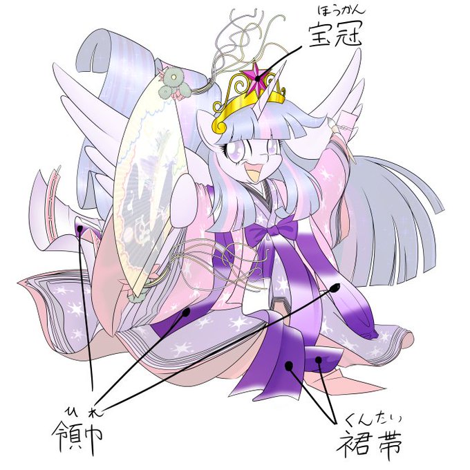実はトワイだけ少々服装が違い、他の5匹の十二単に加え領巾、裙帯、宝冠をつけています。