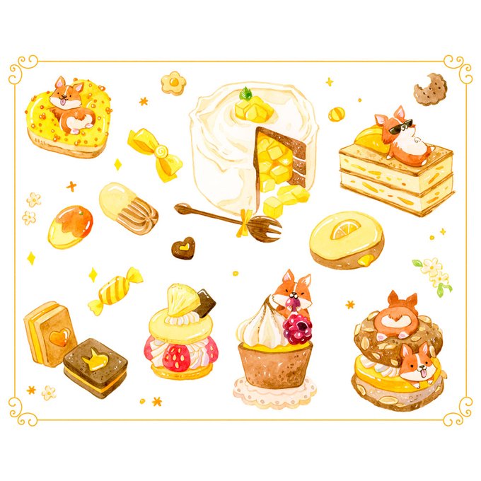 Mango citrus corgi :D last painting of thr series. I’m making a test run before posting them on my store, they should be available soon! #watercolor #mango #artoftheday #corgi #foodillustration #sticker