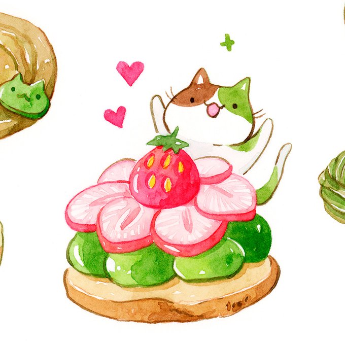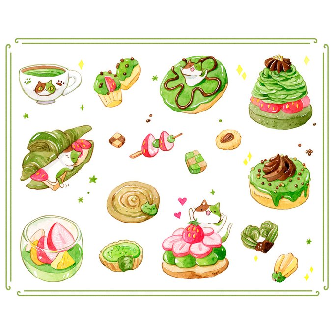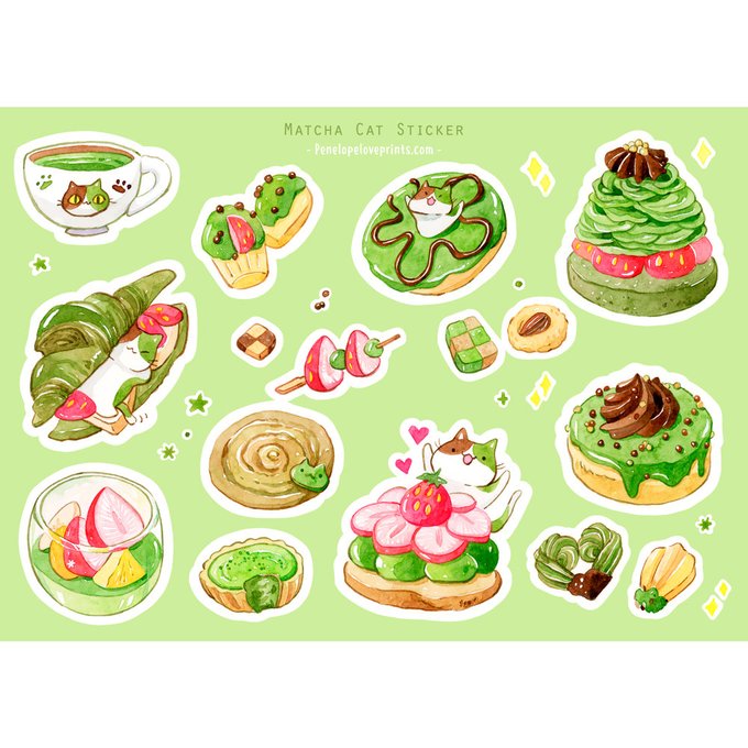Sticker #3 Matcha kitties~ #watercolor #artoftheday #matcha #dessert #foodillustration #cats #traditionalart