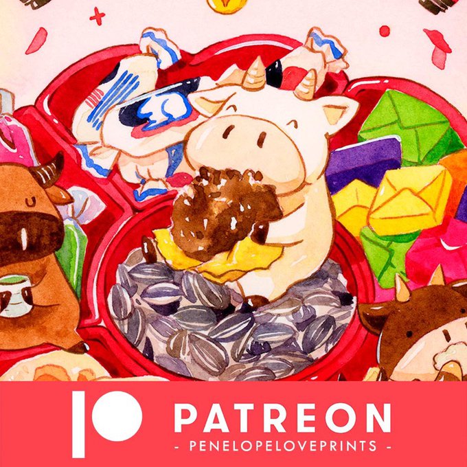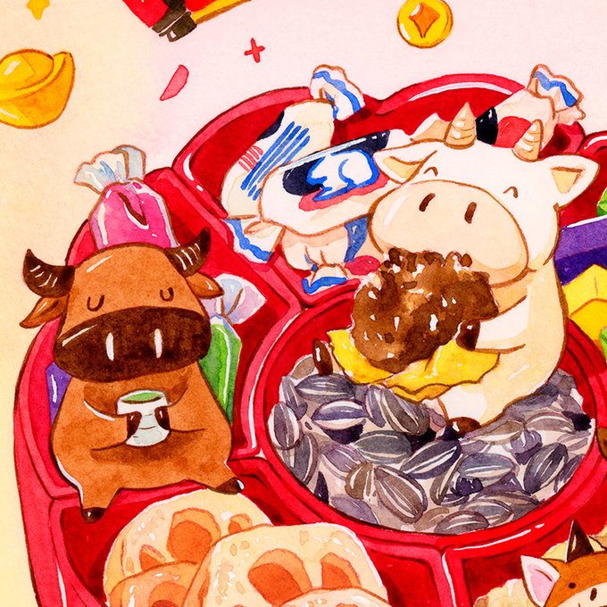 Sneak peek of February Cookie Club art :) Chinese news year is coming, I’m celebrating the year of ox with this cute print next month. Sign up at https://t.co/robjUG4PYT and get a festive art print next month! #watercolor #chinesenewyear #artoftheday #foodillustration #yearofox