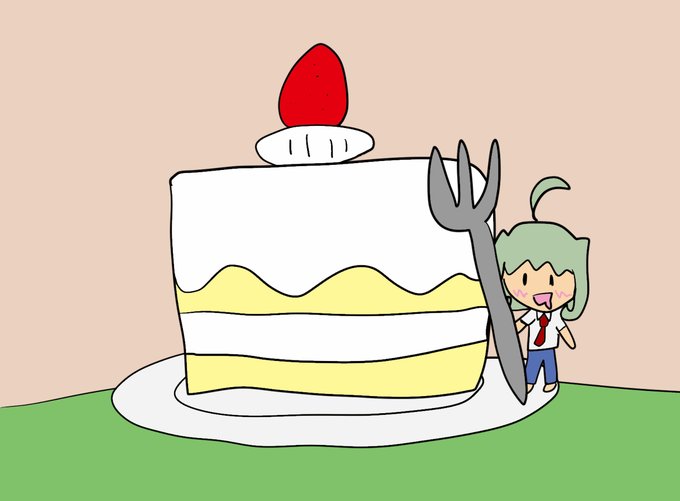 大きいケーキと小さい籠目 #pixiv今日のお題 #ケーキ #オリジナル #オリキャラ #考案キャラ #美楠籠目 https://t.co/SjP5YHrtfn