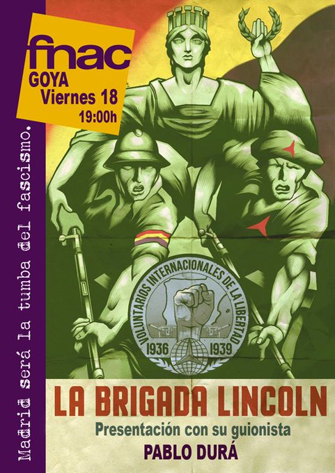 Amigos y amigas, este viernes 18 estaré en la Fnac de Goya en Madrid presentando La Brigada Lincoln. Vengan todos.