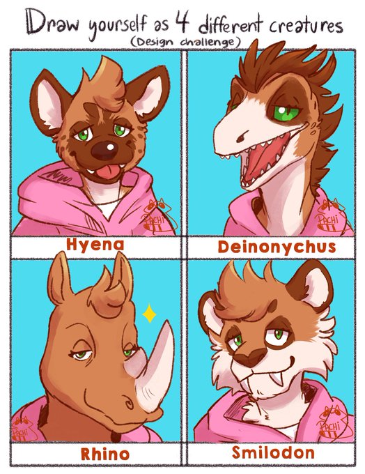 Draw yourself as 4 different creatures. Finished !!