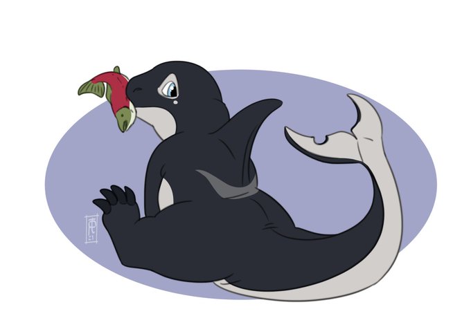 Cute sketch of dragon-orca! Salmon makes a good snack!