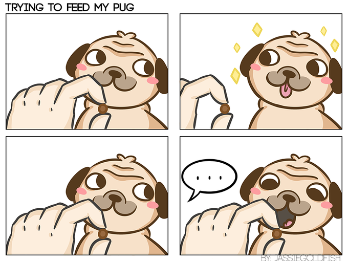 A quick #comicstrip of my experience with spoon-feeding my pug.