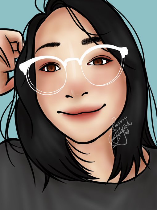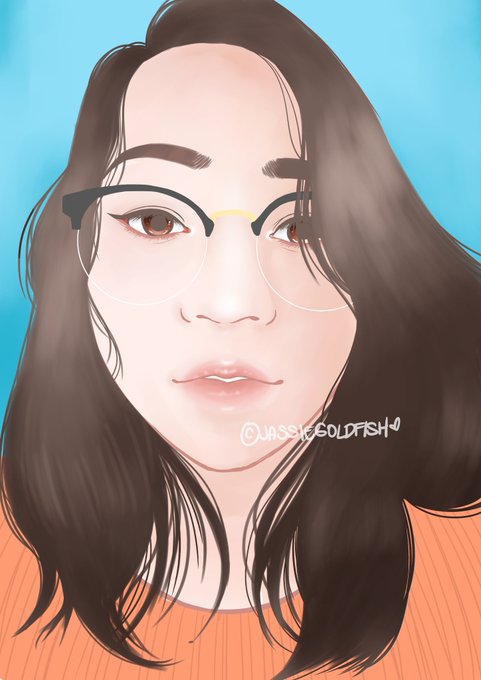 Re-uploaded version of my #semirealism painting. I had to add a few highlights: bridge of my nose, cupid's bow and the inner corner of my eyes. UwU ✨