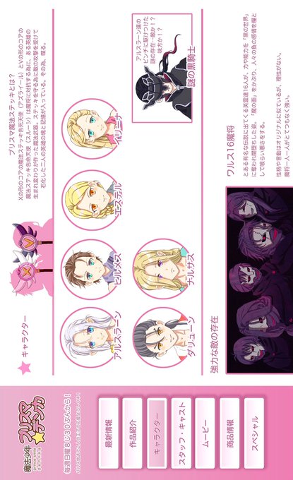 寝る前にダリュとナルも完成したから、追加でなんちゃってHPのキャラ紹介画面をつくった。