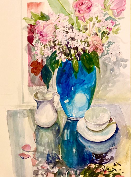 When you know you’re too tired to do just a bit more to a painting that was fresh and promising, remember to listen to that little voice! #watercolour #flowersandpots 🤦♀️