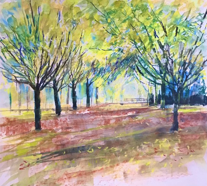 This morning I have painted the same scene, Tree Cathedral, Whipsnade, twice. It’s a beautiful spot that I visited last week. The left painting is watercolour the right is watercolour and pastel on card. Quite exhausted and had better not do any more 😅