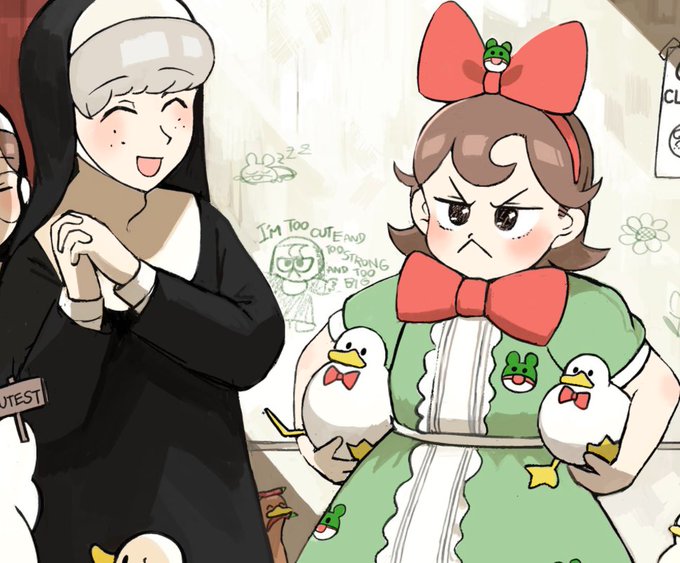 @hyxpk 🐸Frog nun is cute thanks Sheep nun to keep it clean, Big bro folow her mom by obligation and wonders why he has to do this but your are cute too (please not erase this draw)🥰