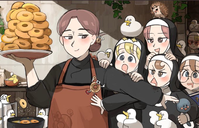 @hyxpk 🐸Frog nun wakes up early just to put tags "mine" everywhere (lets go for donuts)😅