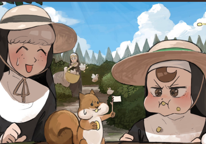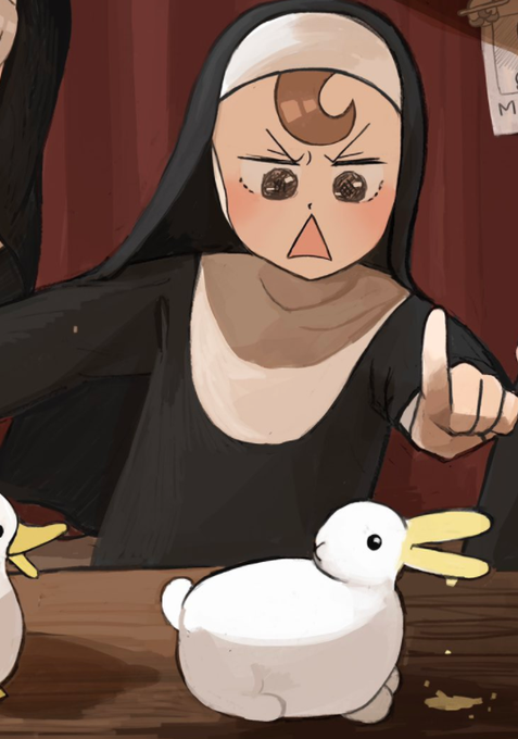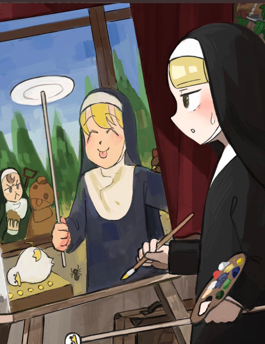 @hyxpk ☺️😄That look of contempt because the strict nun panicked while the clumsy nun slept😅