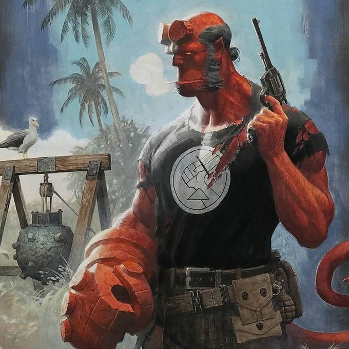 icymi I've got a new #Hellboy cover. Out in Sept. #Gouache on bristol board. https://t.co/k025E66LZc