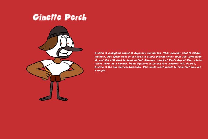 Introducing another character to the Squirrely & Horsey cast. This is Ginette Perch. She is the sporty friend of Squirrely & Horsey who spends her days playing sports and working at a coffee shop.