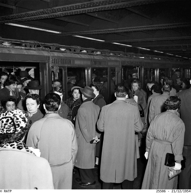 Heure de pointe dans le métro. 1954 #Paris RATP