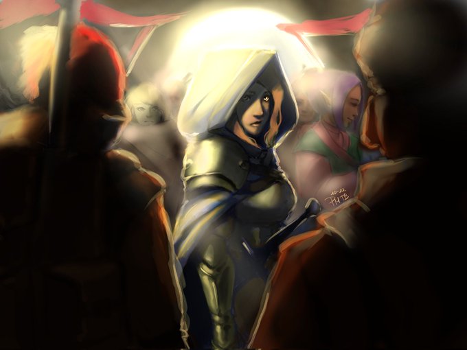 Here's a WIP I'm excited about. If it's not clear yet from the WIP, she's pulling out a magic sword made from light, from her chest (kind of like Raiden from Genshin Impact)