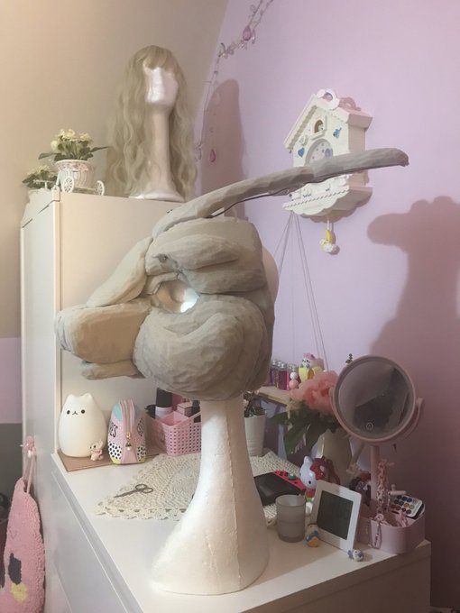 In a dramatic change, my rabbit foam head is now.. a pink chibi aptonoth! 💖