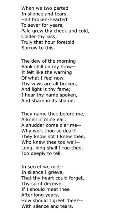 - opening verse of ‘When We Two Parted’ by George Gordon Byron