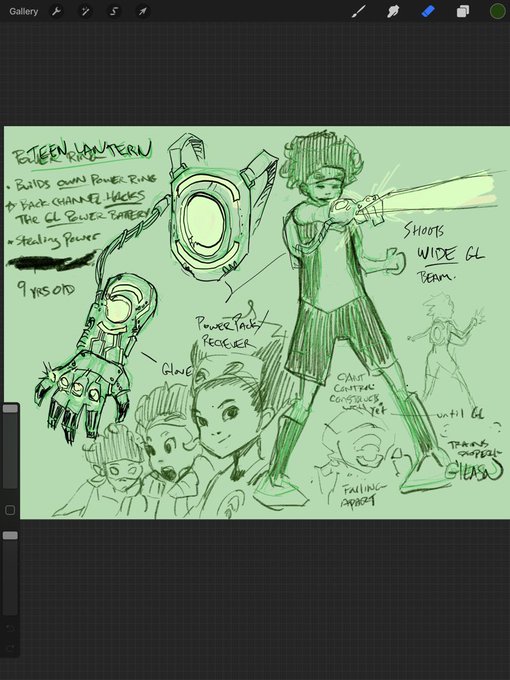 ‘Kid-genius, builds ring to hack Green Lantern power battery, Guy Gardner is not happy.’ My series pitch to DC, and later when asked if I knew any GLs we could use in Young Justice. As @PeterJTomasi told me recently, never throw an idea away, you never know when you may need one.