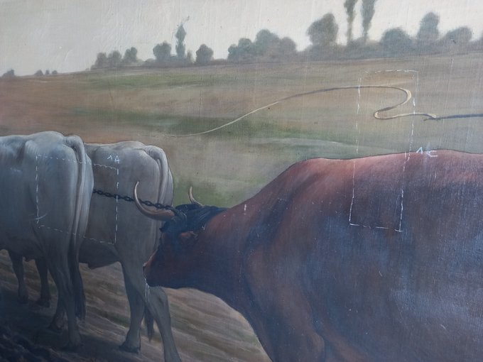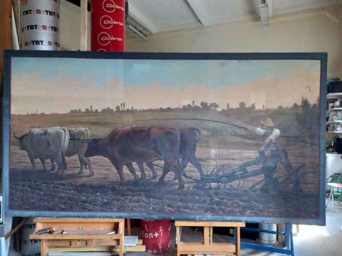 Dans les coulisses du #patrimoine : la #restauration du tableau des Bréviaires commence ! "Le labourage" de Benjamin Ulmann (1829-1884) est arrivé dans l’atelier de la restauratrice. C’est maintenant l’étape du nettoyage… affaire à suivre ! #Yvelines