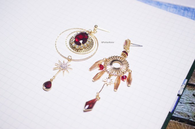 페이트 - 카르나 테마로 제작한 이어링입니다. 태양 형태의 팬던트가 주로 들어갔습니다! 착용한 귀걸이와 목과 가슴의 장식을 최대한 살려보았어요.