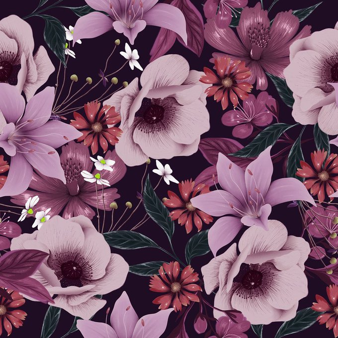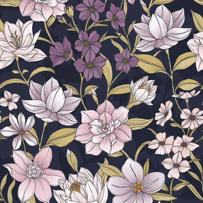 Stylized Floral Print in Navy, Purple & Pink (s-190) by FLOW DESIGN now available on our @patternbank shop! https://t.co/r53pDi6IKJ