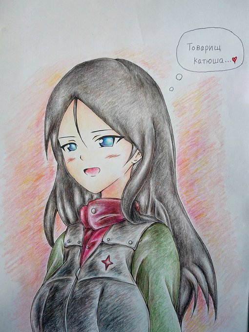 クレセントさん(@croissant_is2)の大洗女子ノンナをダーウェントで塗ってみました!