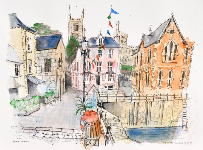 One from a couple of weeks ago: a short break in #Cornwall . This is the sea front at beautiful #Fowey. #art #artist #artistsontwitter #penandink #sketch #urbansketching #urbansketcher #watercolor #drawing #kunst #paintings #Sketching #watercolour #draw #drawtober #drawtober2020